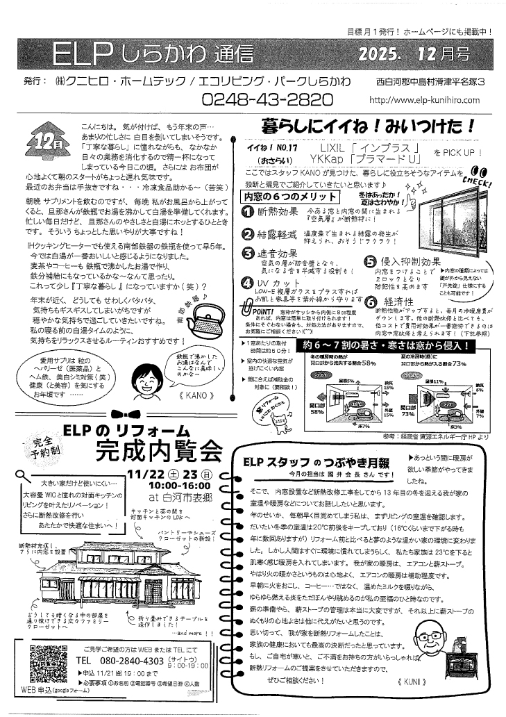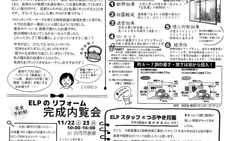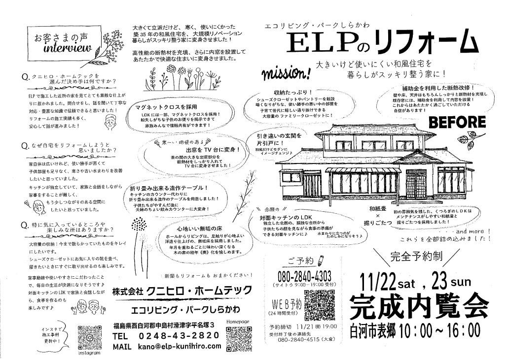 表面は [ ELP のリフォーム完成内覧会] のチラシになっていました。