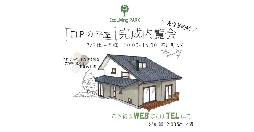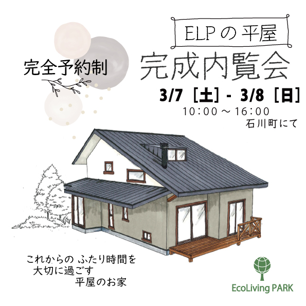 ELPの平屋 完成内覧会のお知らせ 3/7-8