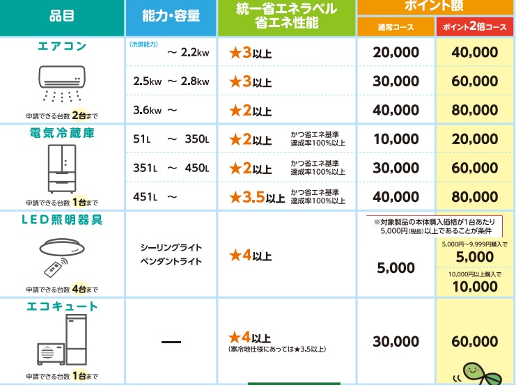 対象省エネ家電を購入の、福島県民の方に、